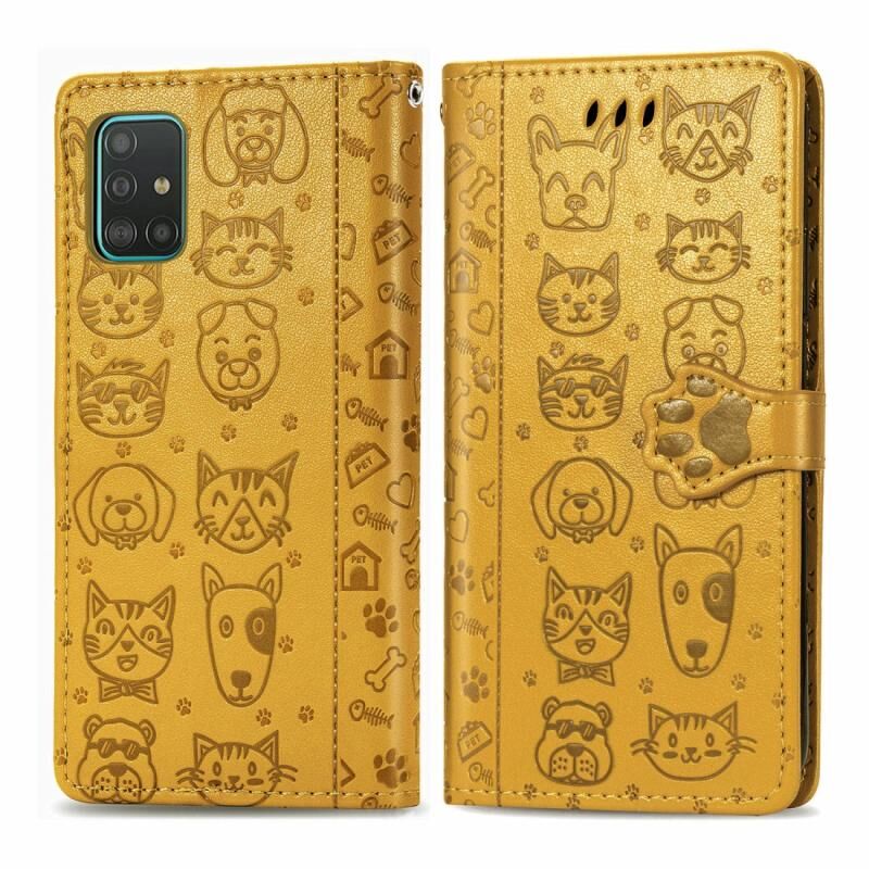 Θήκη δέρματος οριζόντιας αναδίπλωσης με ανάγλυφα σχέδια χαριτωμένων γάτας και σκύλου για Galaxy A71, με βάση στήριξης / υποδοχή κάρτας / πορτοφόλι / κορδόνι (Ροζ)