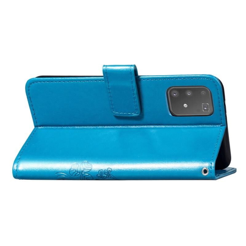 Για Galaxy A71 Θήκη Προστασίας Δερμάτινη για Κινητό με Κούμπωμα Τριφύλλι, ανάγλυφο, με Λουρί, Θήκη Καρτών, Πορτοφόλι & Λειτουργία Στήριξης (Μπλε)