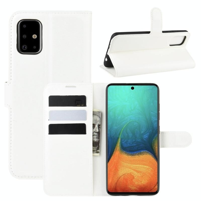 Για Galaxy A71 Litchi Υφή Οριζόντια Flip Προστατευτική θήκη με θήκη & υποδοχές για κάρτες & πορτοφόλι (Λευκό)