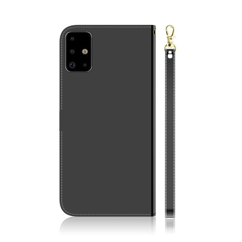 Για Galaxy A71 Mirror-like μαγνητική έλξη οριζόντια Flip δερμάτινη θήκη με κορδόνι, Υποστήριξη κάτοχος & υποδοχή για κάρτες & πορτοφόλι (Μαύρο)