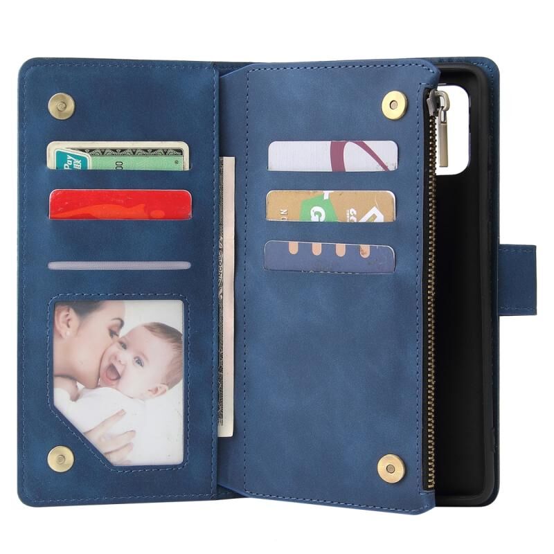Για το Galaxy A71 Πολυλειτουργική οριζόντια δερμάτινη θήκη, με υποδοχή κάρτας & θήκη για κάρτες & φερμουάρ πορτοφόλι & κορνίζα φωτογραφιών (μπλε)