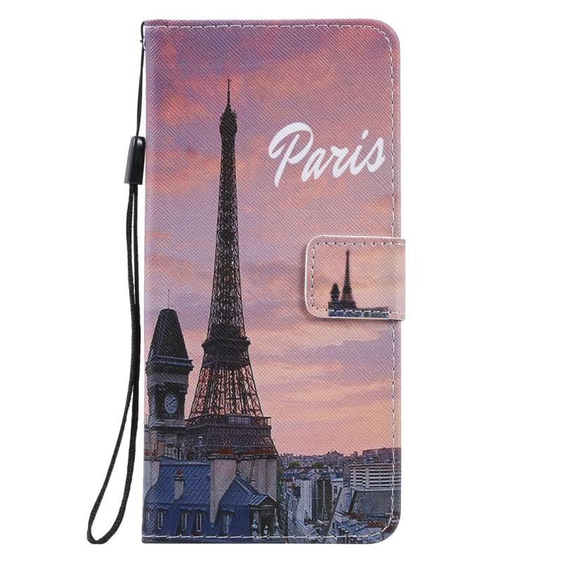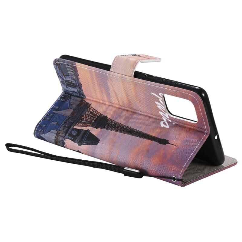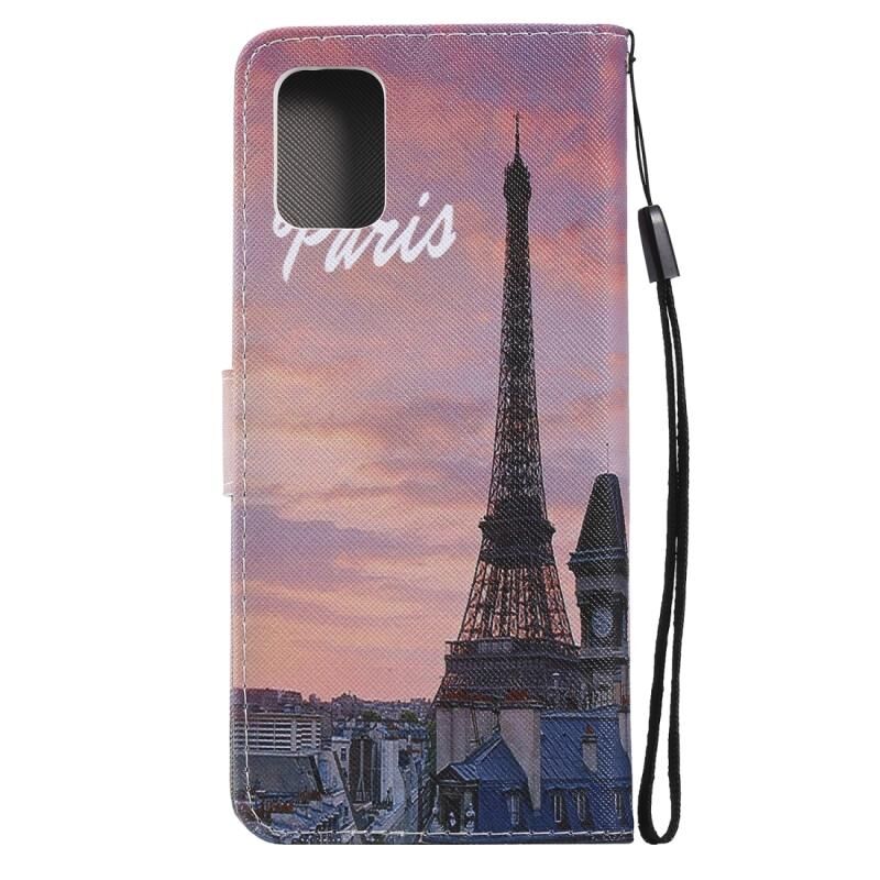 Θήκη δέρματος οριζόντιας αναδίπλωσης για Galaxy A71 με βάση & υποδοχή κάρτας & κορδόνι (Πύργος του Άιφελ)