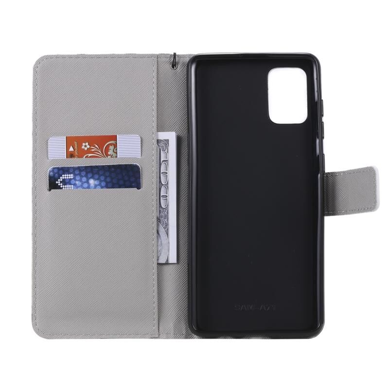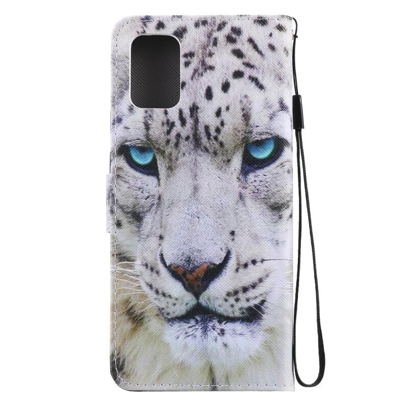 Θήκη δέρματος οριζόντιας αναδίπλωσης για Galaxy A71 με βάση & υποδοχή κάρτας & κορδόνι (Λευκό Λεοπάρ)