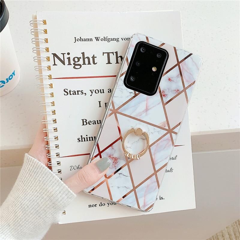 Για Galaxy A71 Επιμετάλλωση πολύχρωμο γεωμετρικό μοτίβο μωσαϊκό μάρμαρο TPU κινητό τηλέφωνο υπόθεση Rhinestone Stand δαχτυλίδι (λευκό PR3)