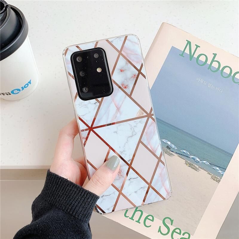 Θήκη κινητού τηλεφώνου TPU με επιμετάλλωση, πολύχρωμο γεωμετρικό μοτίβο, μωσαϊκό μάρμαρο για Galaxy A71 (Ροζ PJ1)