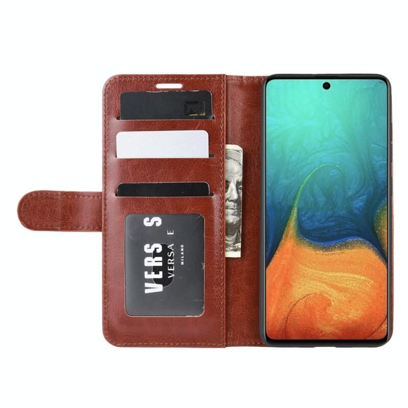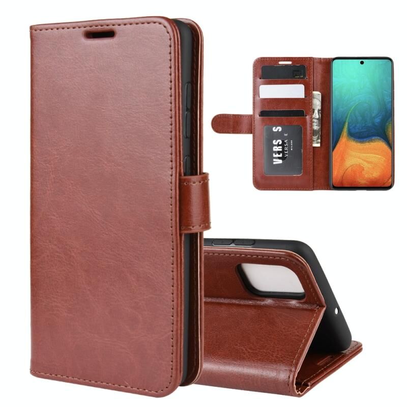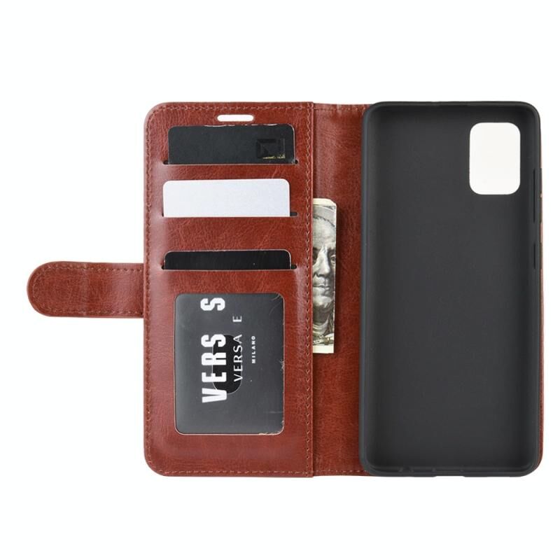 Για Galaxy A71 R64 Υφή ενιαία οριζόντια Flip προστατευτική θήκη με υποδοχή & υποδοχές για κάρτες & πορτοφόλι & κορνίζα φωτογραφιών (καφέ)