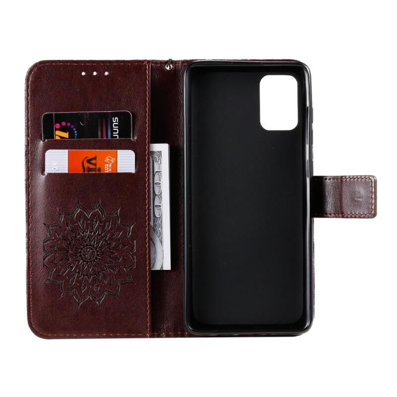 Για Galaxy A71 Sun Print Οριζόντια Flip προστατευτική θήκη με θήκη για κάρτες & υποδοχές & πορτοφόλι (καφέ)