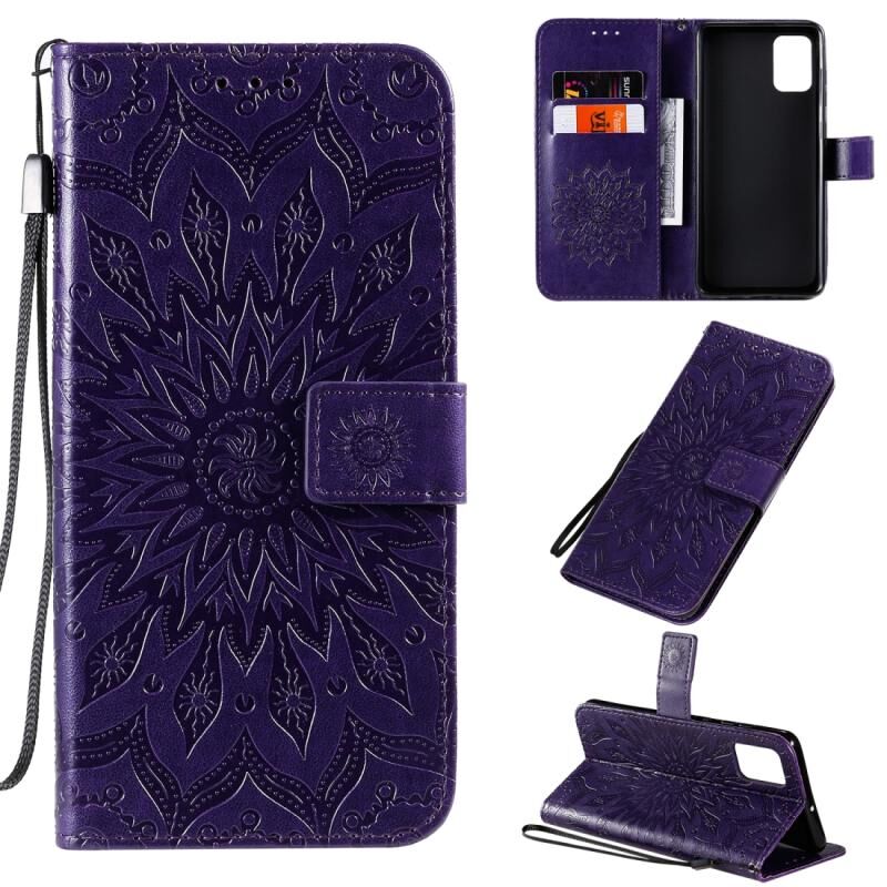 Για Galaxy A71 Sun Print Οριζόντια Flip προστατευτική θήκη με θήκη & υποδοχές για κάρτες & πορτοφόλι (μωβ)