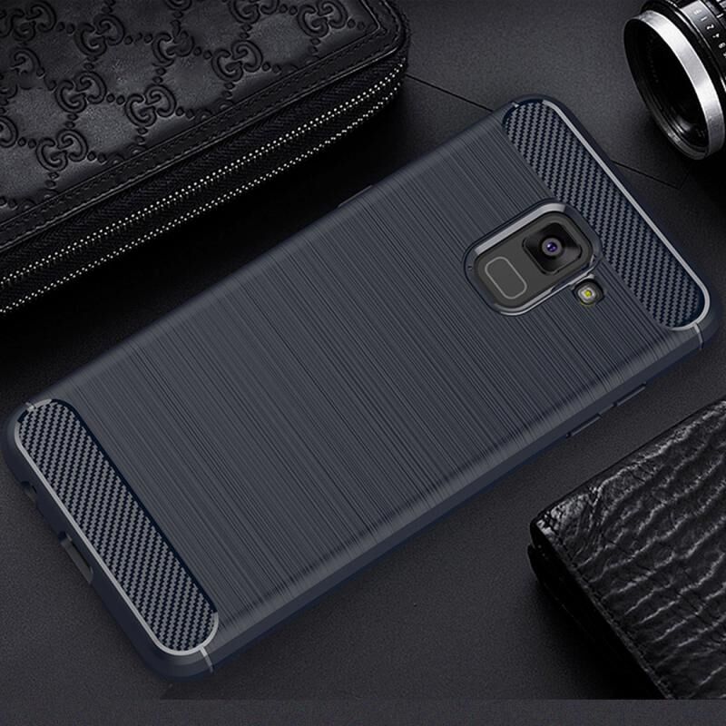 Για το Galaxy A8 (2018) βουρτσισμένη υφή ανθρακονημάτων αντικραδασμική θήκη TPU Προστατευτική πλάτη (Ναυτικό μπλε)