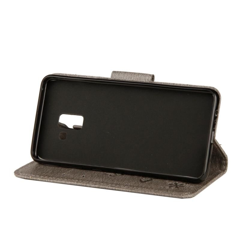 Για Galaxy A8+ (2018) Vintage ανάγλυφο Floral πεταλούδα μοτίβο οριζόντια Flip δερμάτινη θήκη με υποδοχή για κάρτες & κάτοχος & πορτοφόλι & κορδόνι (γκρι)