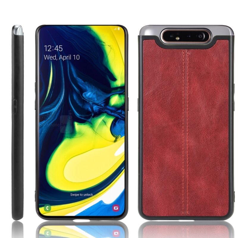 Για το Galaxy A80 / A90 Shockproof Ράψιμο μοτίβο αγελάδας δέρμα PC + PU + TPU υπόθεση (κόκκινο)