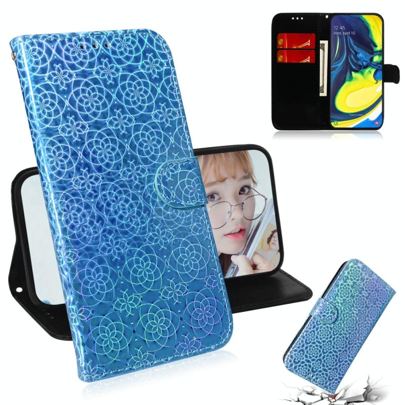 For Galaxy A80 / A90 Solid Color Colorful Magnetic Buckle Horizontal Flip PU Leather Case with Holder & Card Slots & Wallet & Lanyard(Purple)
