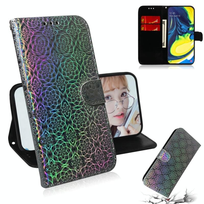 For Galaxy A80 / A90 Solid Color Colorful Magnetic Buckle Horizontal Flip PU Leather Case with Holder & Card Slots & Wallet & Lanyard(Silver)