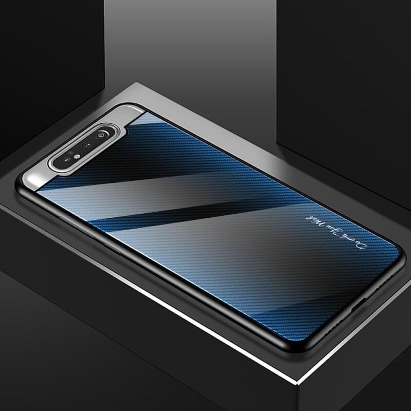 Για Galaxy A80 / A90 Υφή διαβαθμισμένη γυάλινη προστατευτική θήκη (μπλε)