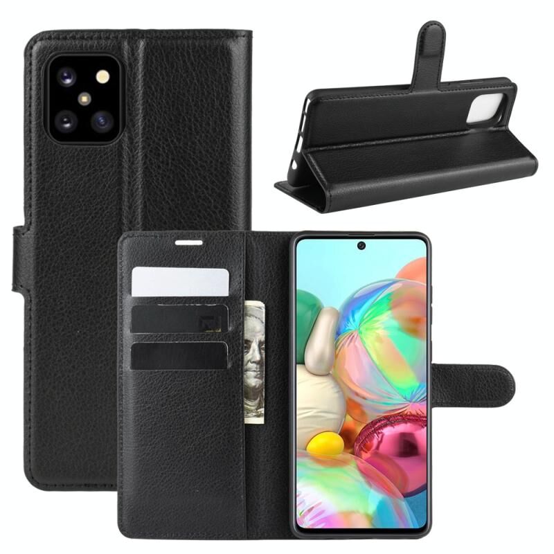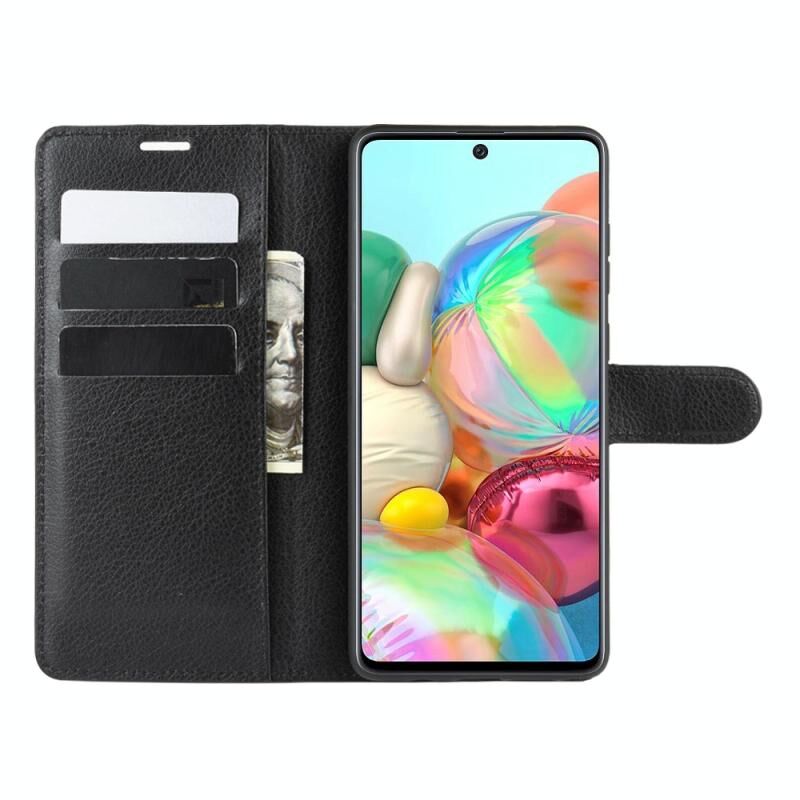 Για Galaxy A81 / M60S / Note 10 Lite Litchi Υφή οριζόντια Flip προστατευτική θήκη με θήκη & υποδοχές για κάρτες & πορτοφόλι (Μαύρο)