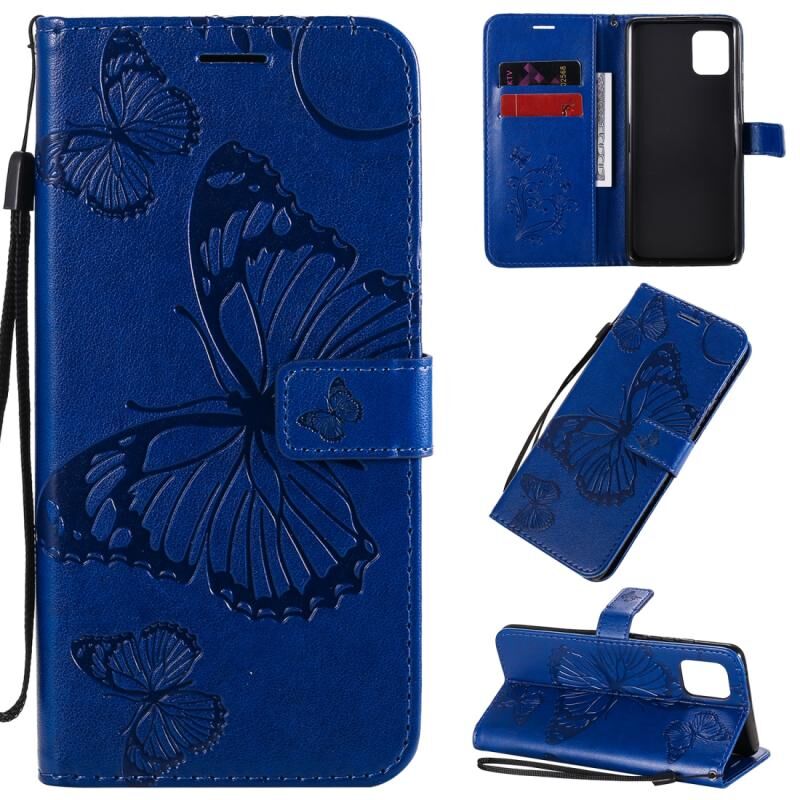 Για Galaxy A81 / M60s / Note10 Lite 3D Πεταλούδες Θήκη Δέρματος Οριζόντιας Αναδίπλωσης με Υποδοχή & Θήκη Κάρτας & Πορτοφόλι & Λουρί (Μπλε)