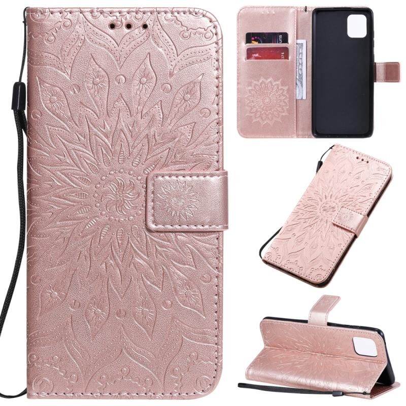Θήκη για Galaxy A81 / M60S / Note10 Lite με εκτύπωση ηλιοτροπίου, οριζόντια αναδιπλούμενη από δερματίνη PU με βάση στήριξης & θήκες καρτών & πορτοφόλι & κορδόνι (Ροζ χρυσός)