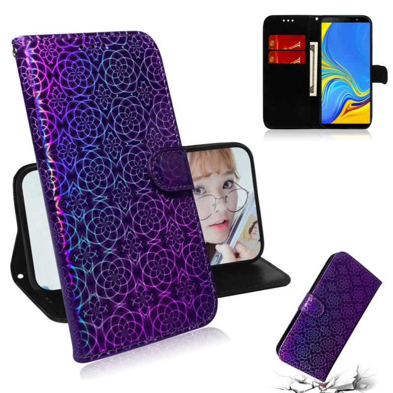 For Galaxy A9 2018 Solid Color Colorful Magnetic Buckle Horizontal Flip PU Leather Case with Holder & Card Slots & Wallet & Lanyard(Purple)