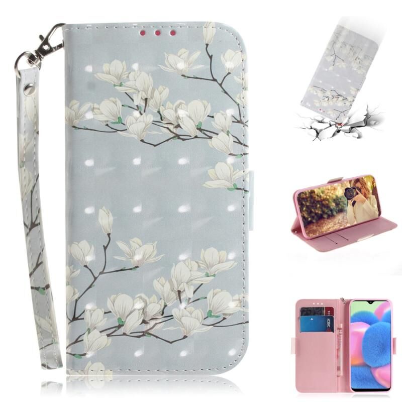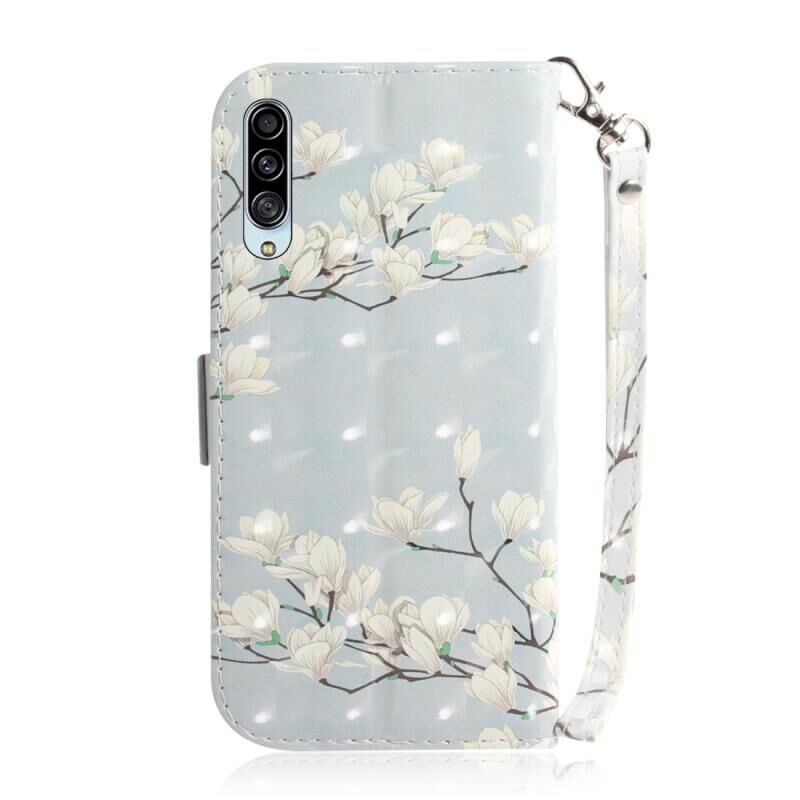 Θήκη για Galaxy A90 5G 3D με έγχρωμη σχεδίαση, οριζόντια αναδιπλούμενη από δερματίνη PU με βάση στήριξης & υποδοχές καρτών & πορτοφόλι (Μαγνολία)