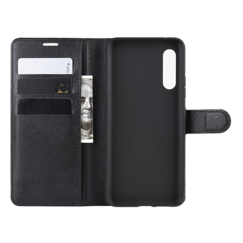 Για Galaxy A90 5G Litchi Υφή Οριζόντια Flip δερμάτινη θήκη με πορτοφόλι & θήκη & υποδοχές για κάρτες (μαύρο)