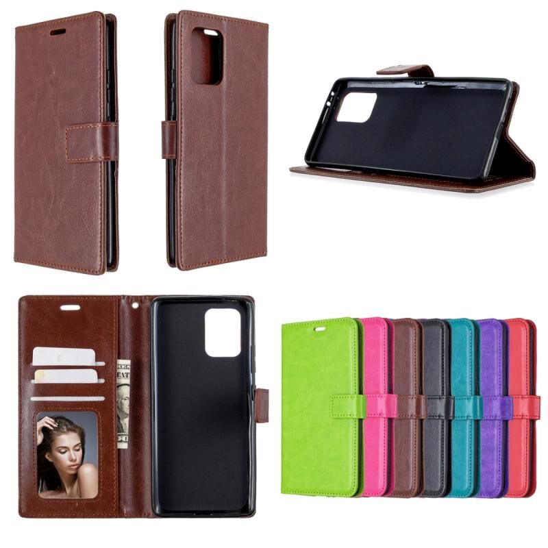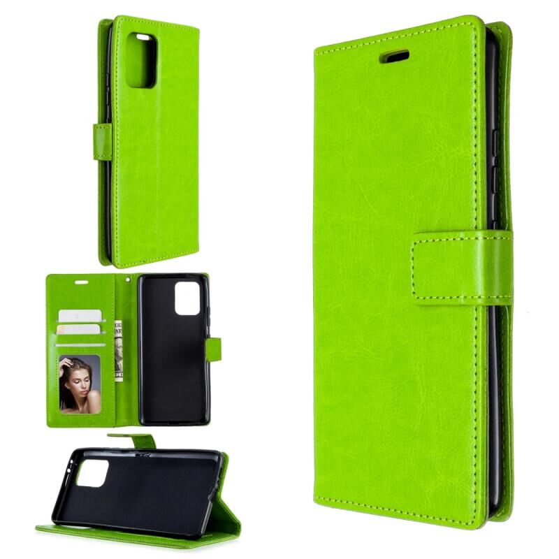 Θήκη δέρματος οριζόντιας αναδίπλωσης με υφή Crazy Horse για Galaxy A91 με βάση & υποδοχές καρτών & πορτοφόλι & κορνίζα φωτογραφιών (πράσινο)