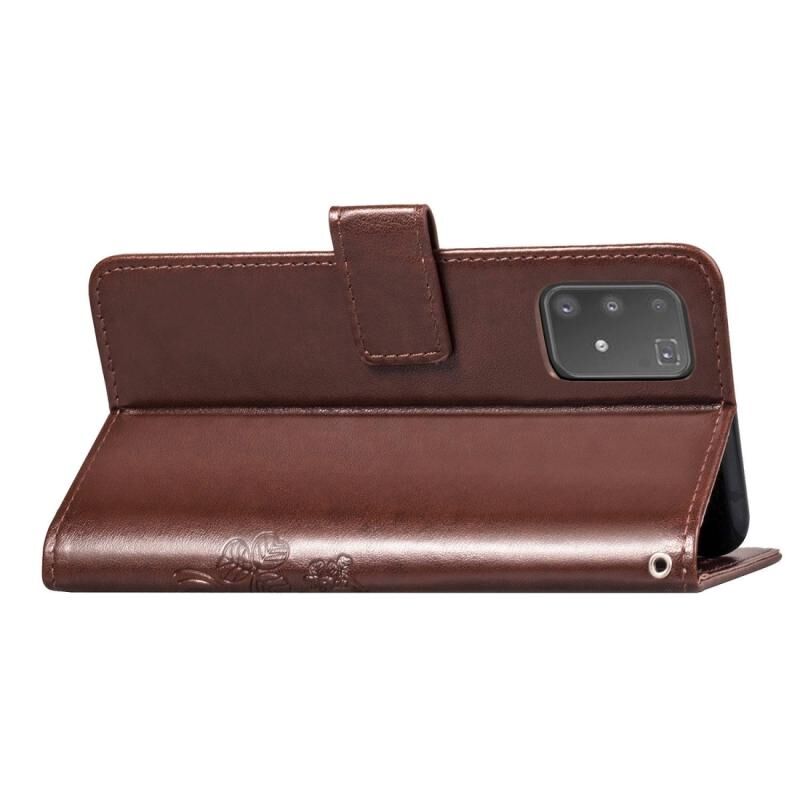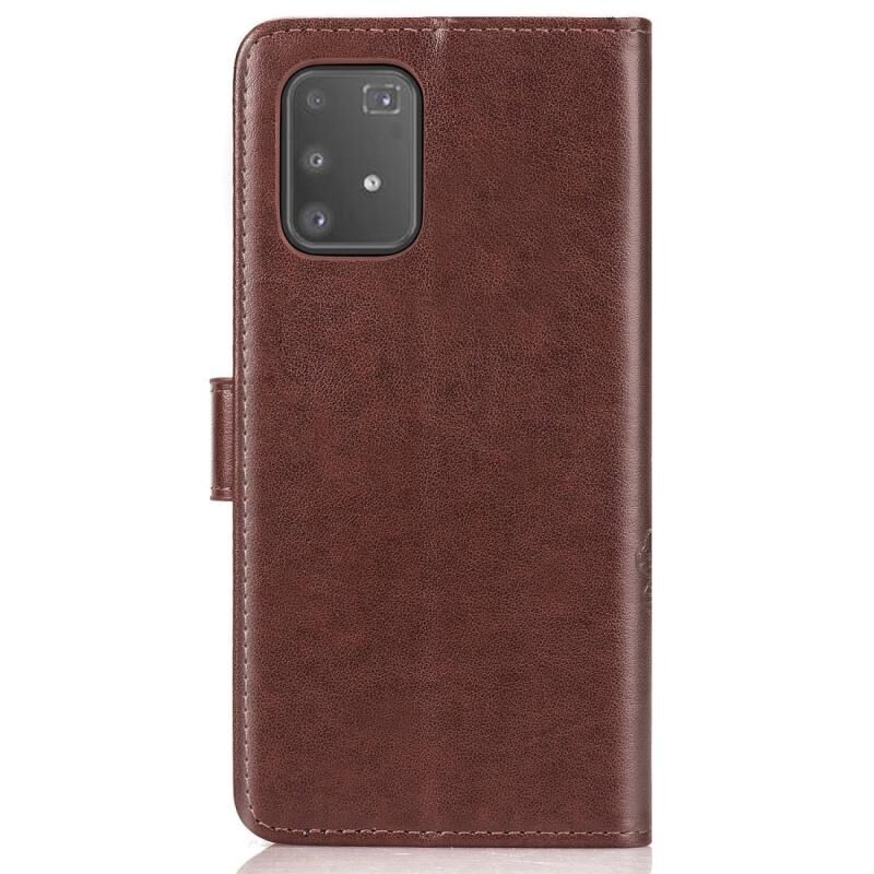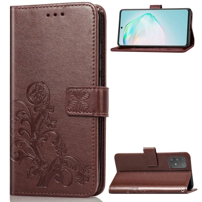 Για Galaxy A91 Θήκη Προστασίας Δερμάτινη για Κινητό με Κούμπωμα Τριφύλλι, ανάγλυφο, με Λουρί, Θήκη Καρτών, Πορτοφόλι & Λειτουργία Στήριξης (Καφέ)