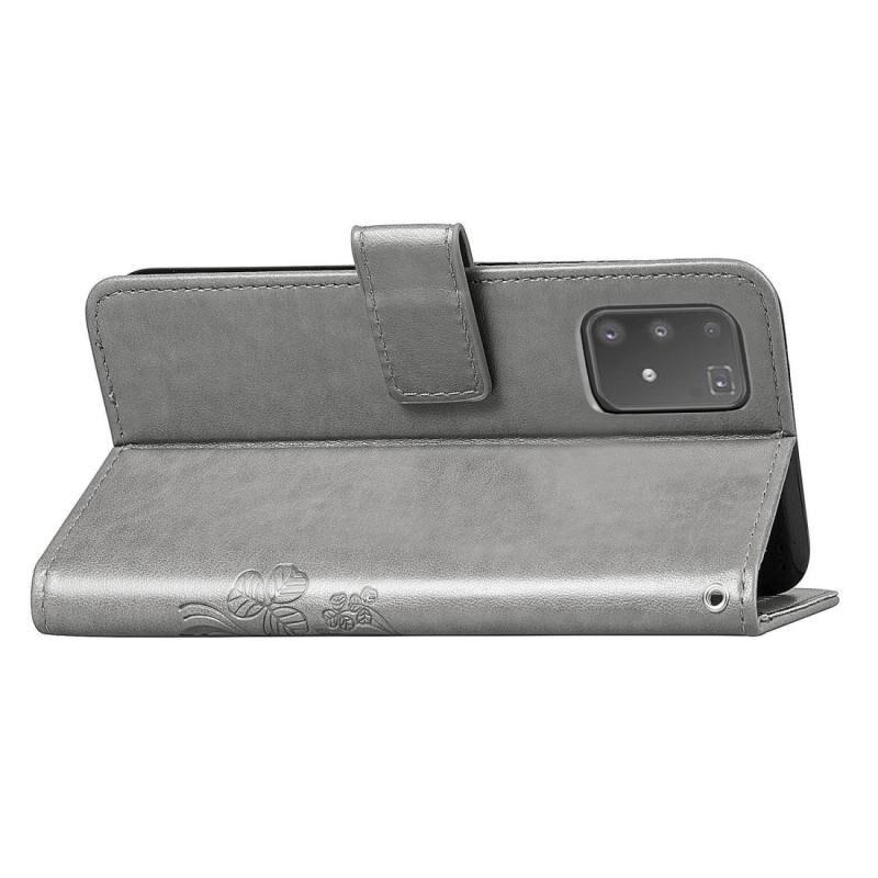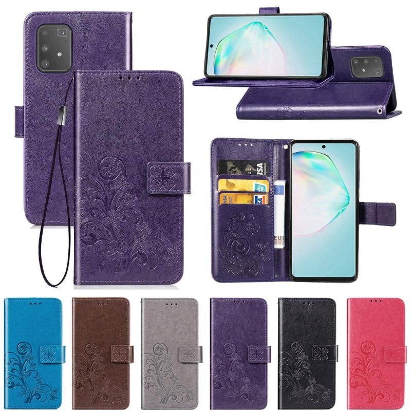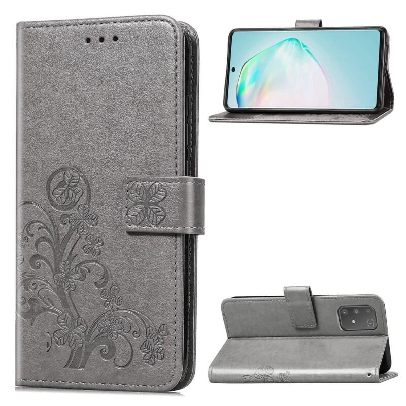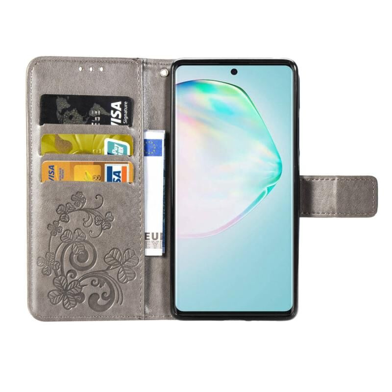 Για Galaxy A91 Θήκη Προστασίας Δερμάτινη για Κινητό με Κούμπωμα Τριφύλλι, ανάγλυφο, με Λουρί, Θήκη Καρτών, Πορτοφόλι & Λειτουργία Στήριξης (Γκρι)