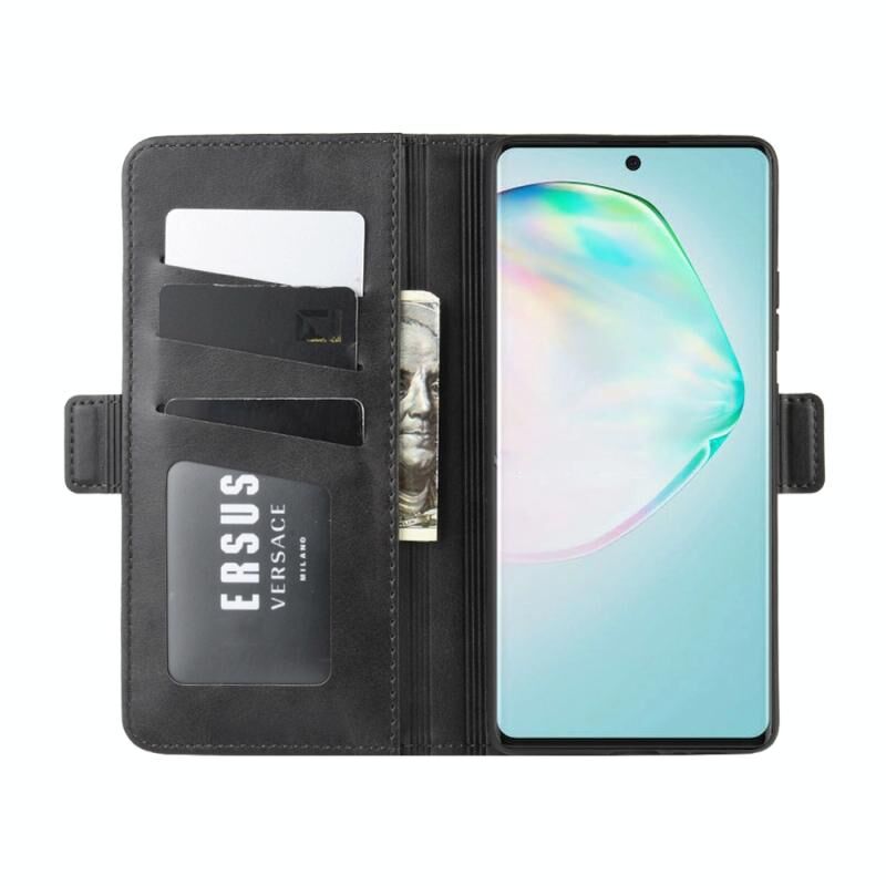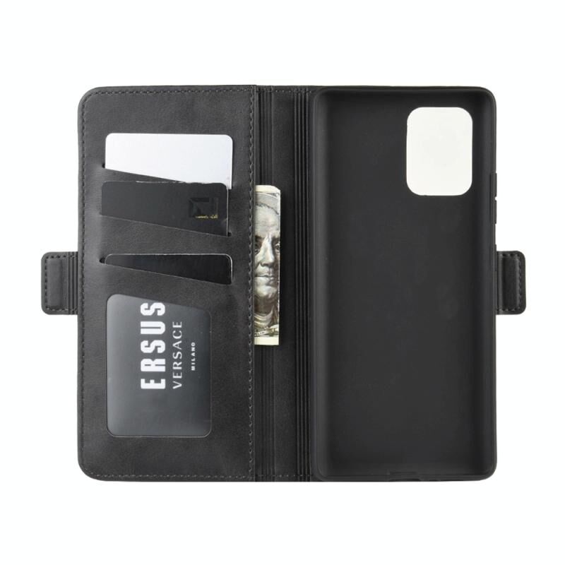 Για Galaxy A91 / M80s / S10 Lite διπλής όψης μαγνητική πόρπη οριζόντια Flip δερμάτινη θήκη με θήκη & υποδοχές καρτών & πορτοφόλι (μαύρο)