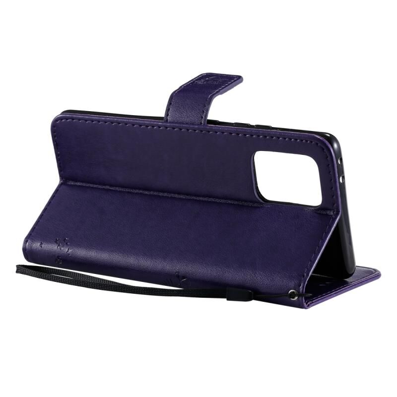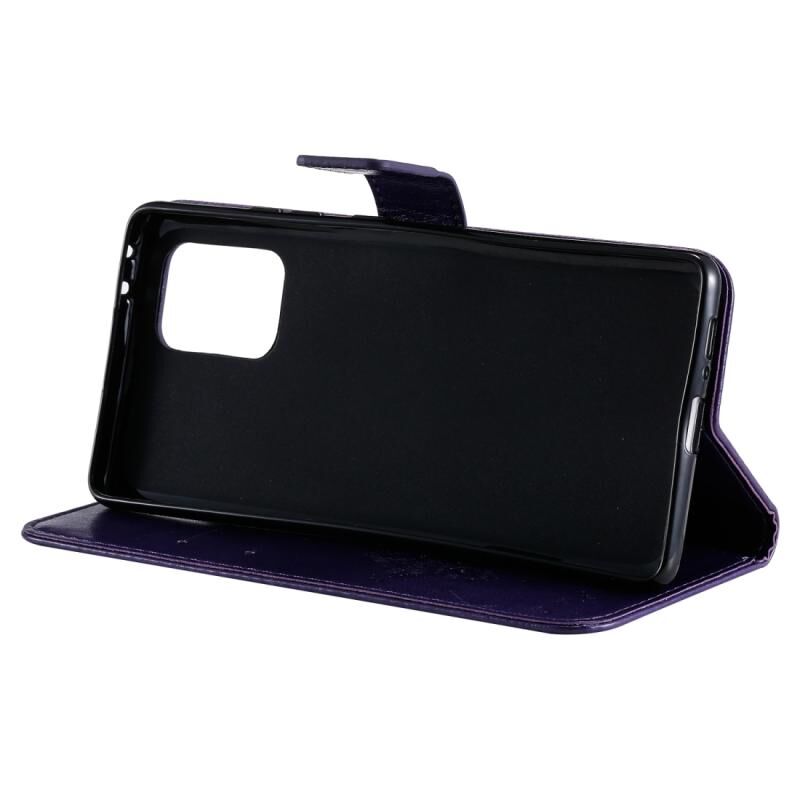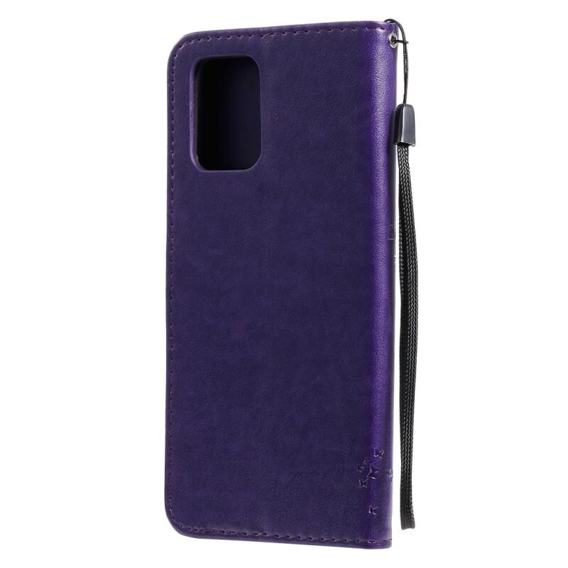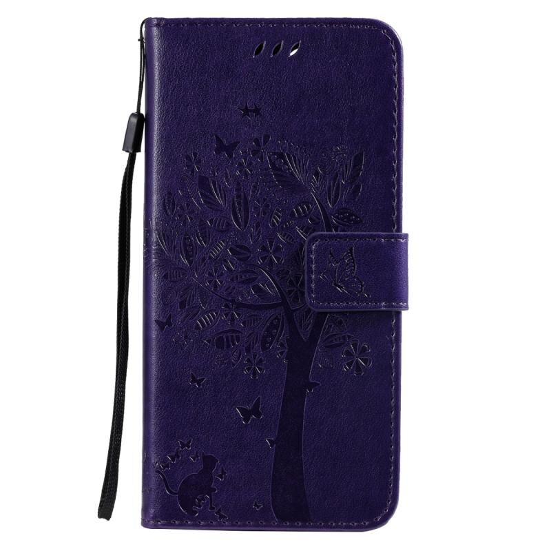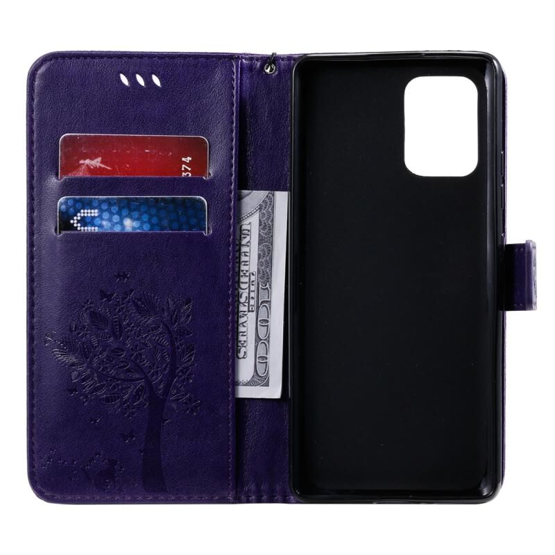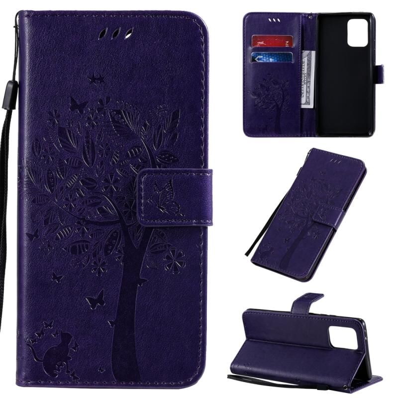 Θήκη για Galaxy A91 / M80S με σχέδιο Δέντρου & Γάτας, εκτυπωμένη με θερμοτύπηση, οριζόντια, από δερματίνη PU με βάση στήριξης & θήκες για κάρτες & πορτοφόλι & κορδόνι (Μωβ)