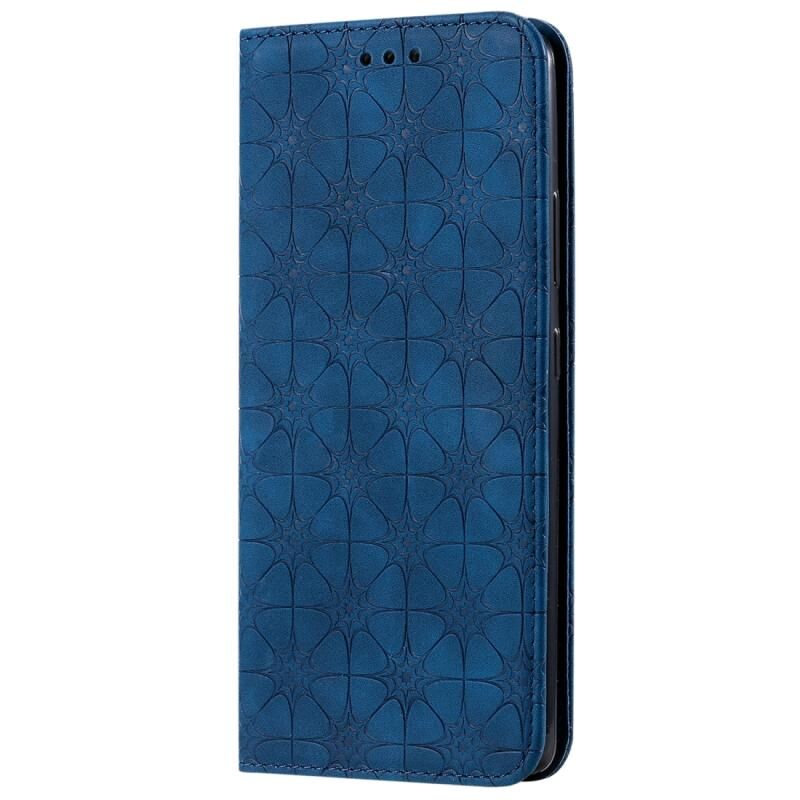 Θήκη δέρματος με μαγνητικό κλείσιμο, οριζόντια, με ανάγλυφο σχέδιο τυχερών λουλουδιών και θήκη/υποδοχές για κάρτες, για Galaxy A91 / S10 Lite / M80s (Σκούρο Μπλε)