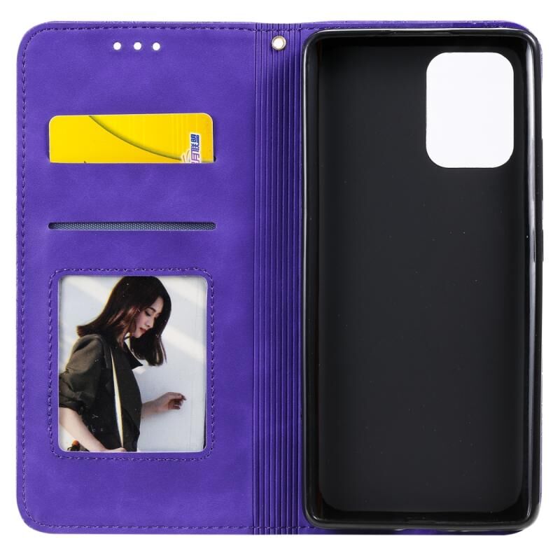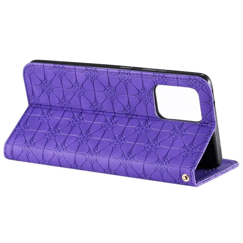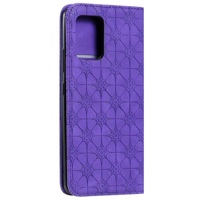 Θήκη δέρματος με μαγνητικό κλείσιμο, οριζόντια, με ανάγλυφο σχέδιο τυχερών λουλουδιών και θήκη/υποδοχές για κάρτες, για Galaxy A91 / S10 Lite / M80s (Μωβ)