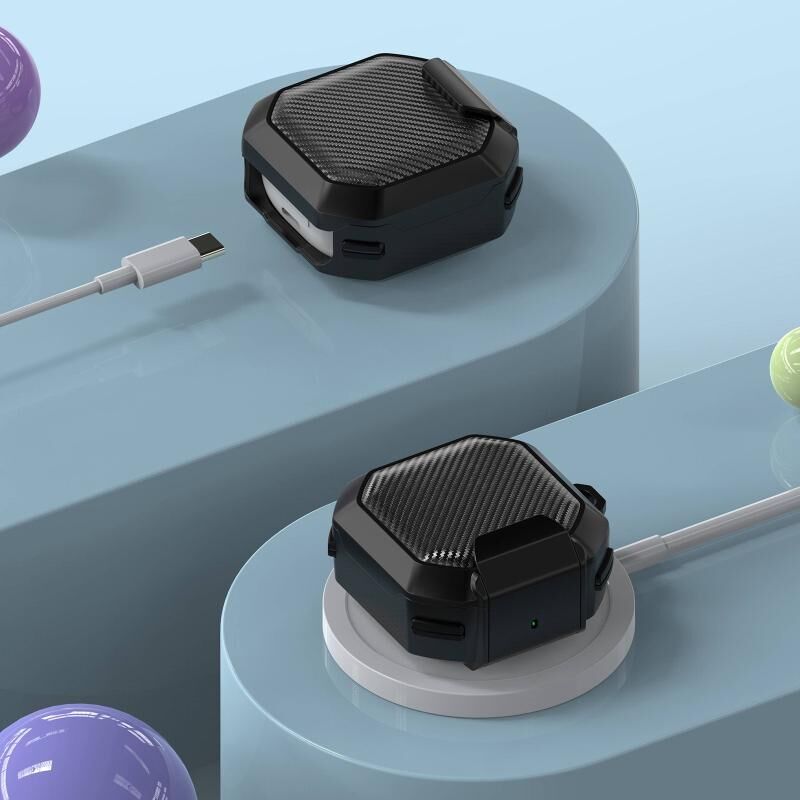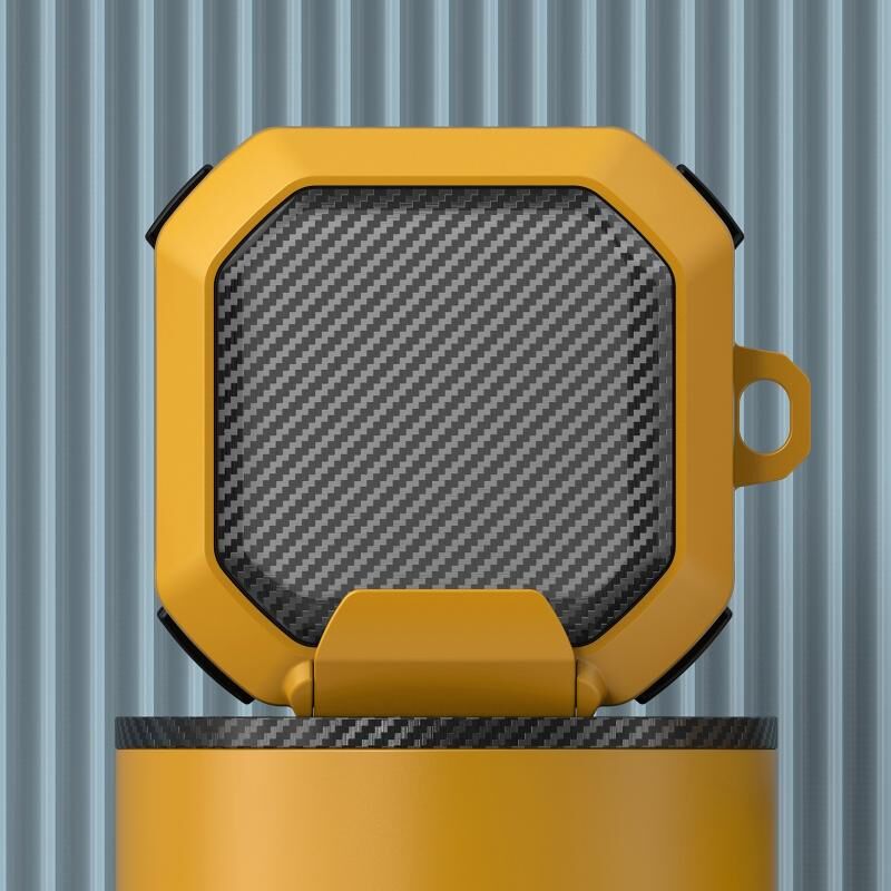 For Galaxy Buds Live / Pro /2 /2 Pro / FE Carbon Fiber TPU Hybrid PC Case with Hook(Yellow)