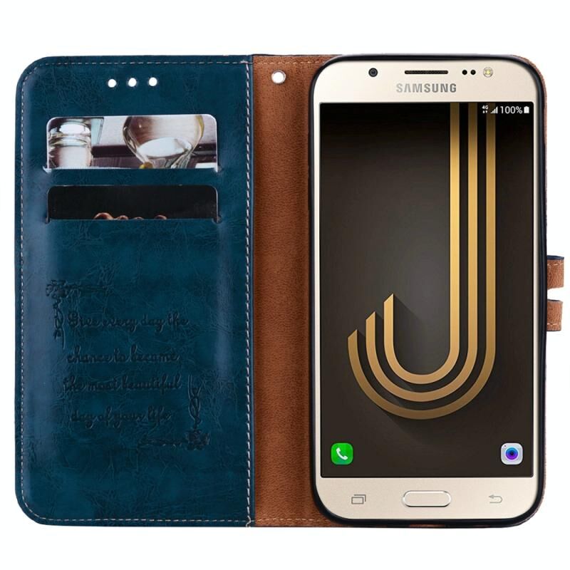 Για το Galaxy J3 (2017) / J330 (έκδοση ΕΕ) Business Style Oil Wax Texture Horizontal Flip Leather Case με θήκη & υποδοχές για κάρτες & πορτοφόλι (μπλε)