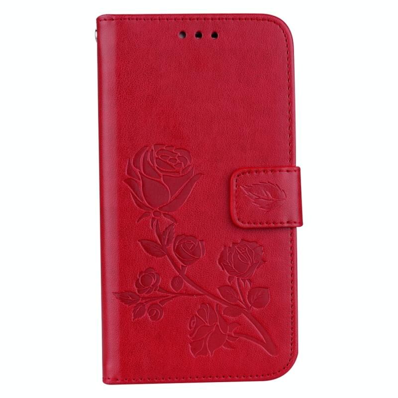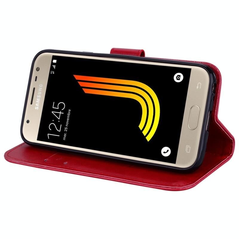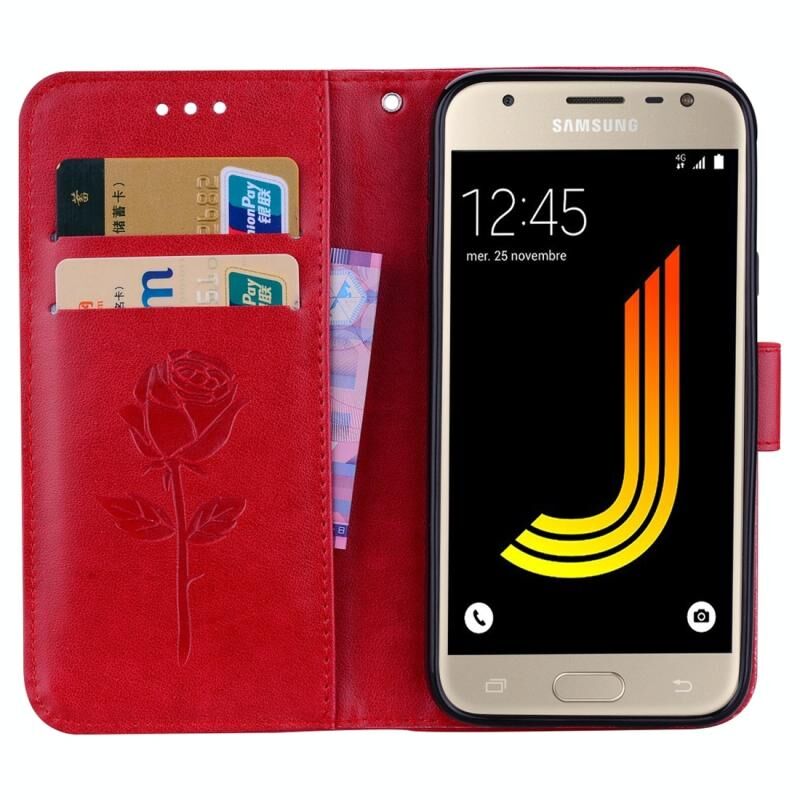 Για το Galaxy J3 (2017) / J330 (έκδοση ΕΕ) Τριαντάφυλλα πατημένο λουλούδι μοτίβο οριζόντια Flip δερμάτινη θήκη με θήκη & υποδοχές για κάρτες & πορτοφόλι (κόκκινο)
