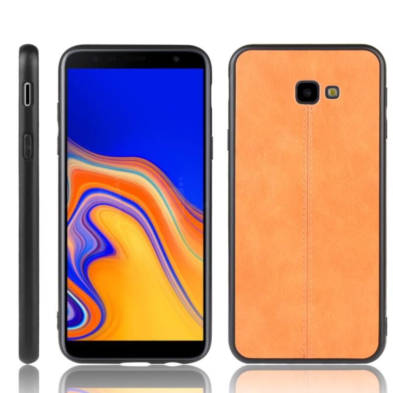 Για το Galaxy J4 Plus Shockproof ραπτικής αγελάδας μοτίβο δέρματος PC + PU + TPU υπόθεση (πορτοκαλί)