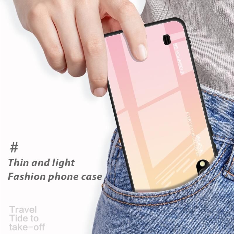 Για Galaxy M10 Γυάλινη θήκη χρώματος διαβάθμισης (μωβ)