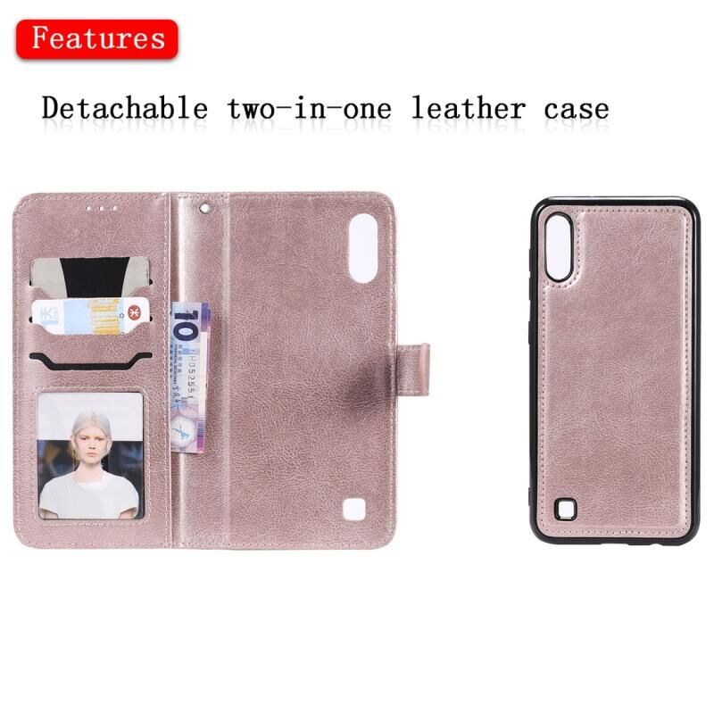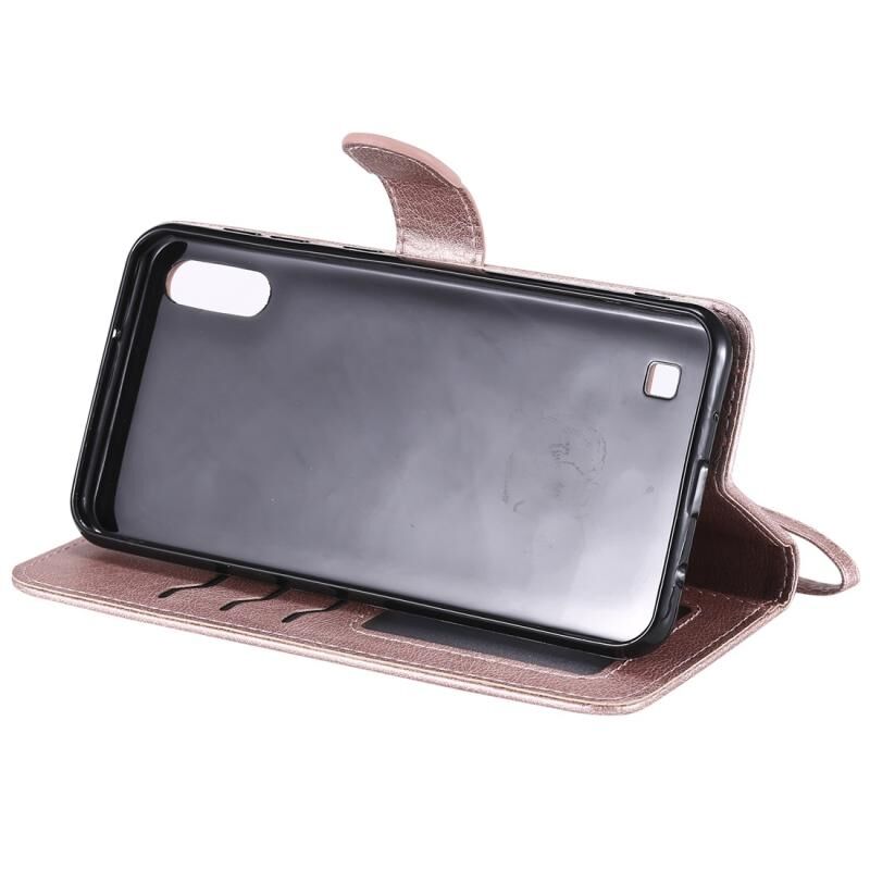 Για Galaxy M10 Αμιγές χρώμα οριζόντια Flip προστατευτική θήκη με θήκη & υποδοχές για κάρτες & πορτοφόλι & κορνίζα φωτογραφιών & κορδόνι (Rose Gold)