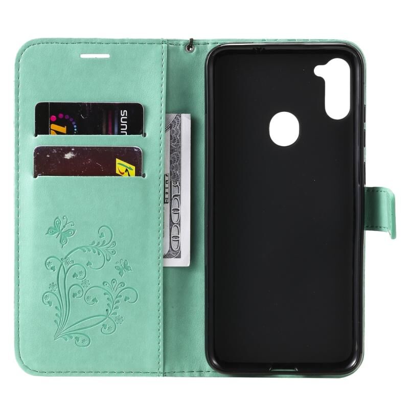 Για Galaxy M11 3D Πεταλούδες Embossing Μοτίβο Οριζόντια Δερμάτινη Θήκη με Στήριξη & Θήκη Κάρτας & Πορτοφόλι & Λουρί (Πράσινο)