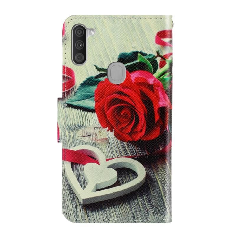 Θήκη δέρματος οριζόντιας αναδίπλωσης με σχέδιο για Galaxy M11, με βάση στήριξης & υποδοχή κάρτας & πορτοφόλι (Κόκκινο Στόμα Γάτας)