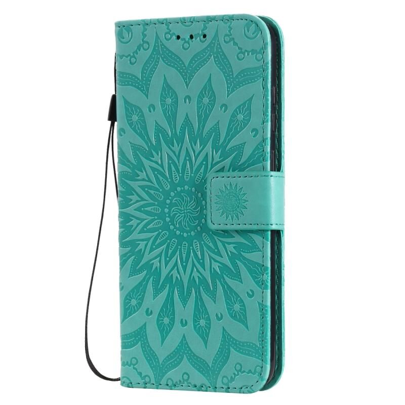 Θήκη για Galaxy M11, με εκτύπωση ηλιοτροπίου, οριζόντια αναδίπλωση, από δερματίνη PU, με βάση στήριξης, θήκες για κάρτες, πορτοφόλι & λουρί (Μωβ)