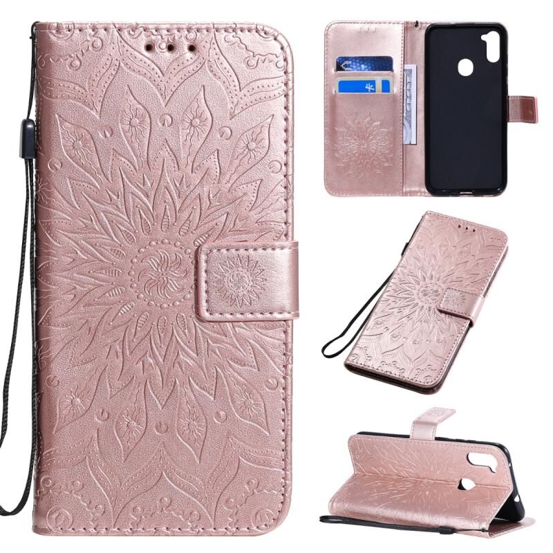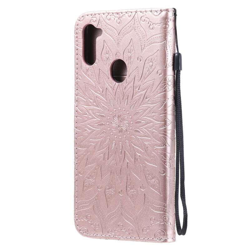 Θήκη για Galaxy M11, με εκτύπωση ηλιοτροπίου, οριζόντια αναδίπλωση, από δερματίνη PU, με βάση στήριξης, θήκες για κάρτες, πορτοφόλι & λουρί (Καφέ)