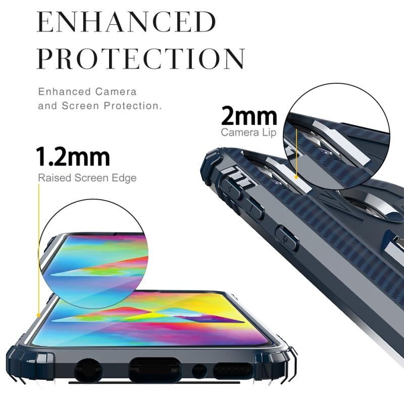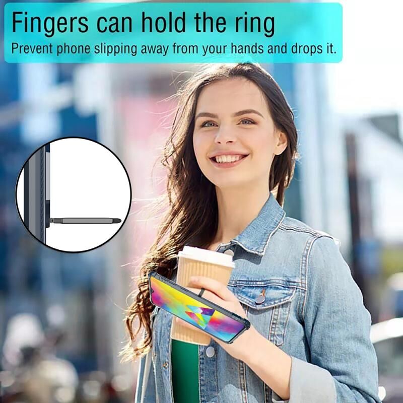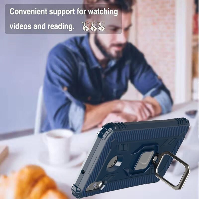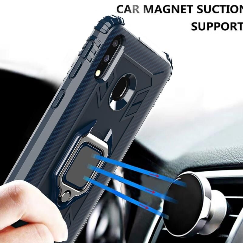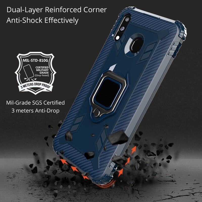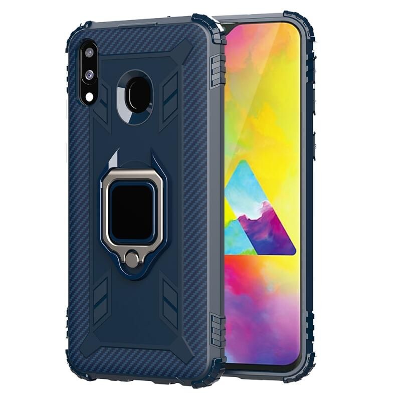 Για Galaxy M20 Carbon Fiber Προστατευτική θήκη με 360 μοίρες περιστρεφόμενη θήκη δακτυλίου (μπλε)