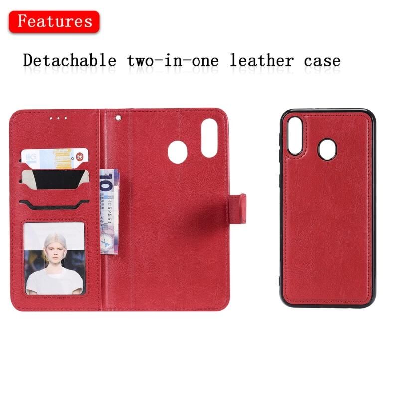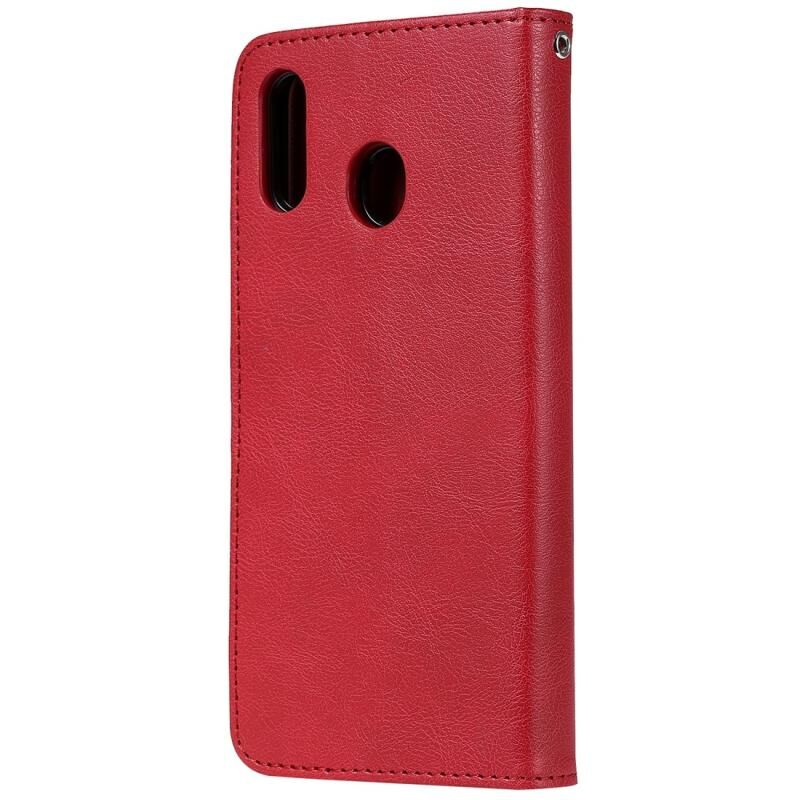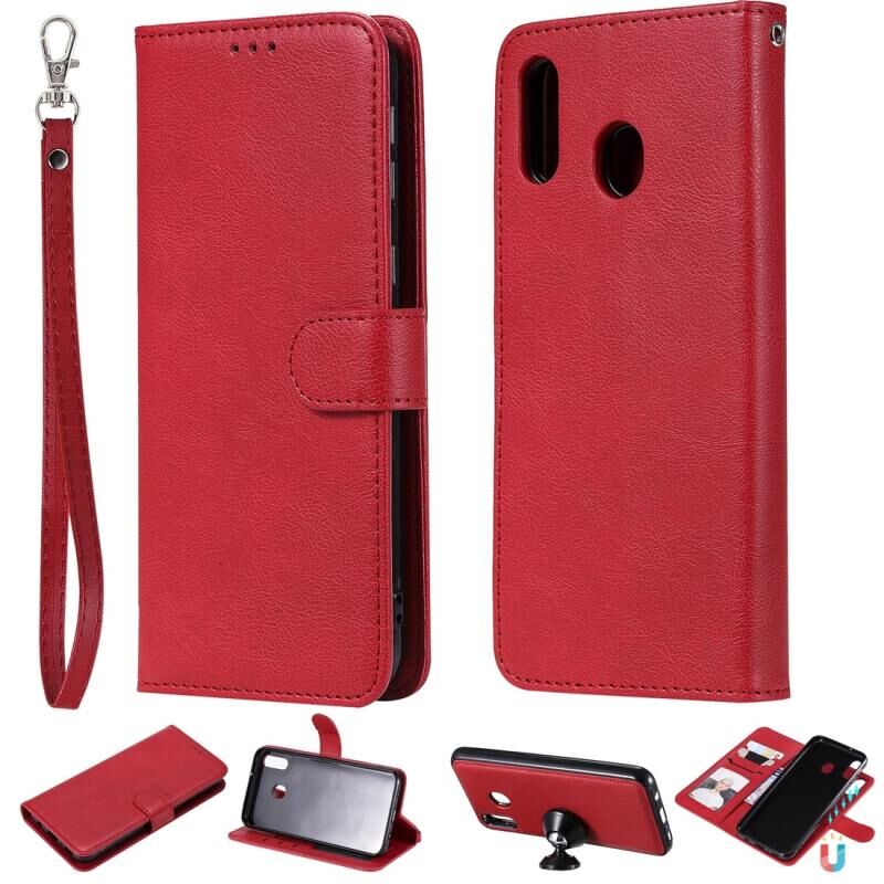 Για Galaxy M20 Αμιγές χρώμα οριζόντια Flip προστατευτική θήκη με θήκη & υποδοχές για κάρτες & πορτοφόλι & πλαίσιο φωτογραφιών & κορδόνι (κόκκινο)