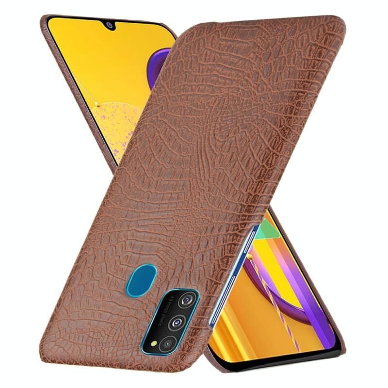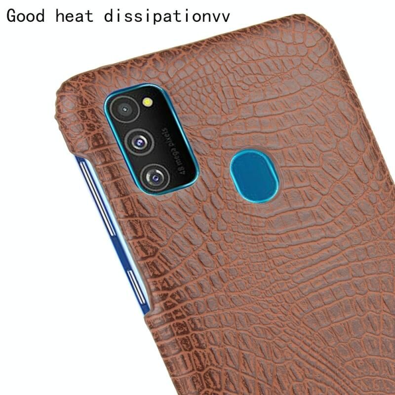 Για Galaxy M21 Αδιάβροχο κροκόδειλο υφή PC + PU υπόθεση (καφέ)