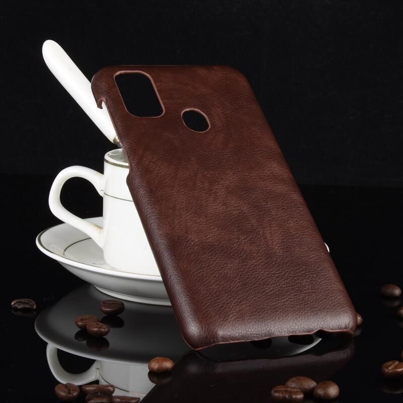 Για Galaxy M21 Αδιάβροχο Litchi Υφή PC + PU υπόθεση (καφέ)