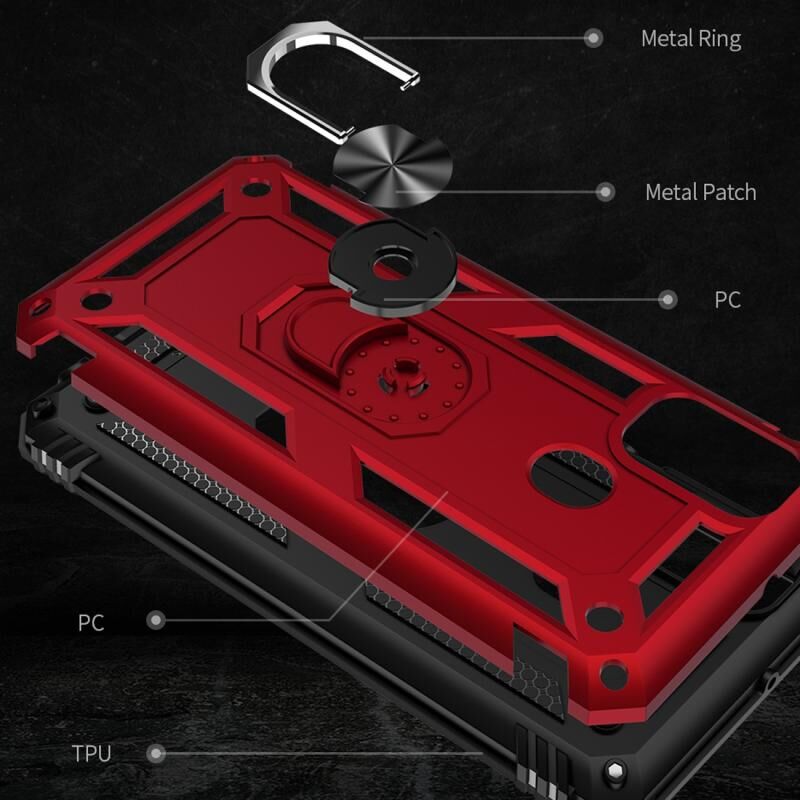 Θήκη Προστασίας Armor Shockproof TPU + PC με Στήριξη Περιστροφής 360 Μοιρών για Galaxy M30s (Κόκκινο)