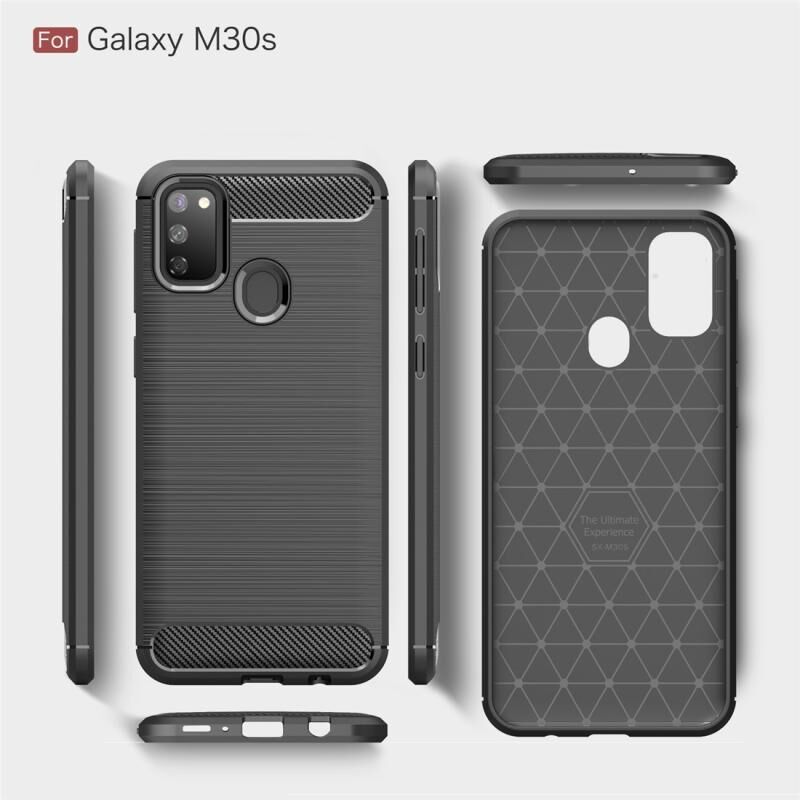 Για Galaxy M30s βουρτσισμένη υφή θήκη TPU ινών άνθρακα (Ναυτικό μπλε)