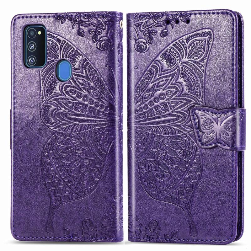 For Galaxy M30s Butterfly Love Flower Embossed Horizontal Flip Leather Case with Bracket Lanyard Card Slot Wallet(Dark Purple)