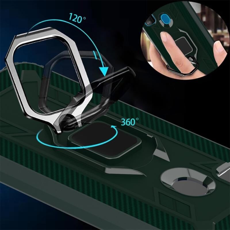 Για Galaxy M30s Carbon Fiber Προστατευτική θήκη με 360 μοίρες περιστρεφόμενη θήκη δακτυλίου (πράσινο)