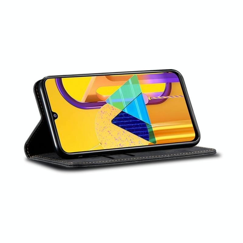 Για Galaxy M30s Denim υφή Casual Style Οριζόντια Flip δερμάτινη θήκη με θήκη & υποδοχές για κάρτες & πορτοφόλι (Μαύρο)